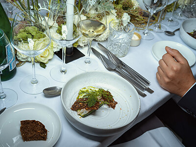 Forret 1: Mouse på dansk regnbueørred - salsa verde - citron - sæsonens grønt - malt